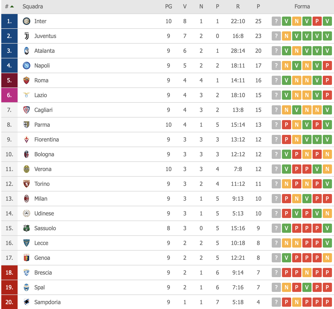 CLASSIFICA – L’Inter vince a Brescia ed è momentaneamente in testa alla classifica!