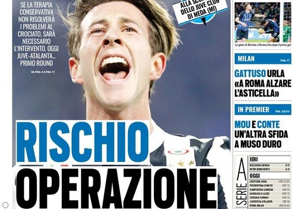 PRIME PAGINE – Bernardeschi: rischio operazione. Squilli derby, l’Inter fatica ma batte il Benevento