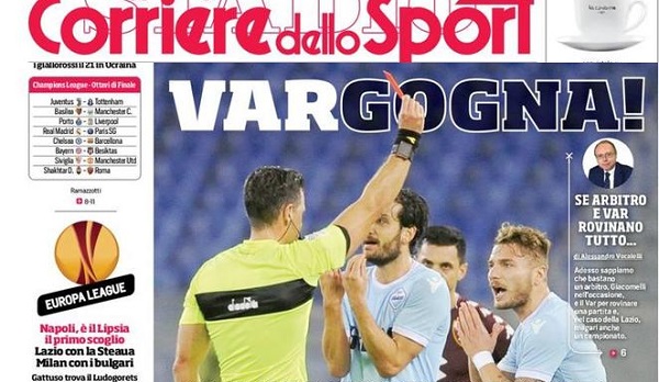 PRIME PAGINE – “VARgogna! Rigore netto negato alla Lazio. Europa League, Lipsia primo scoglio per il Napoli”