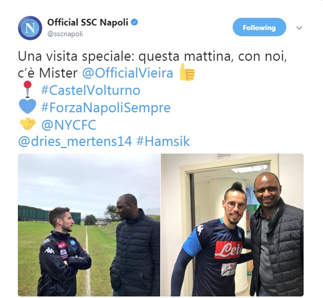 FOTO – Sorpresa per i calciatori del Napoli, a Castel Volturno c’è Vieira! Guardate chi ha incontrato