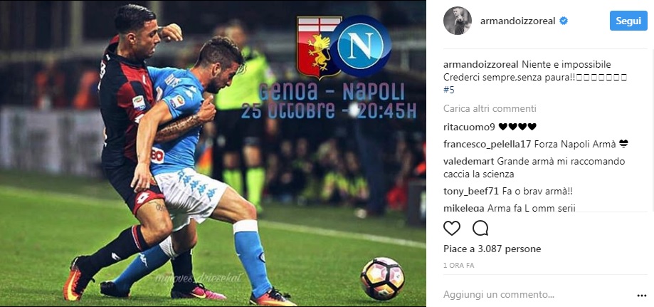 FOTO – Izzo si carica per la sfida con il Napoli: “Niente è impossibile, crederci senza paura!”