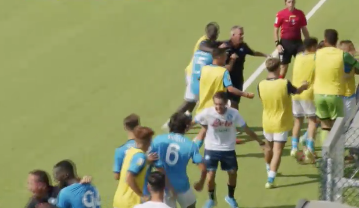 Napoli-Sampdoria 1-6 (5′ Yepes Laut, 30′ Polli, 54′ Costanzo, 81′ Acuino, 87′ Di Stefano, 88′ Paoletti, 90′ Leonardi): finisce la partita! Figuraccia per gli azzurrini in 11 contro 10