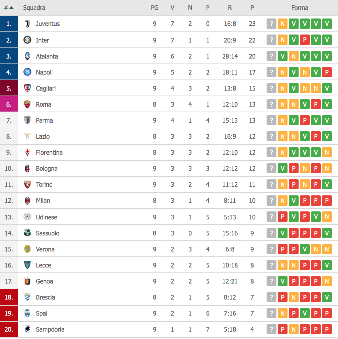 CLASSIFICA – Napoli fermato dalla Spal, Atalanta a valanga: ne fa 7 all’Udinese! (FOTO)