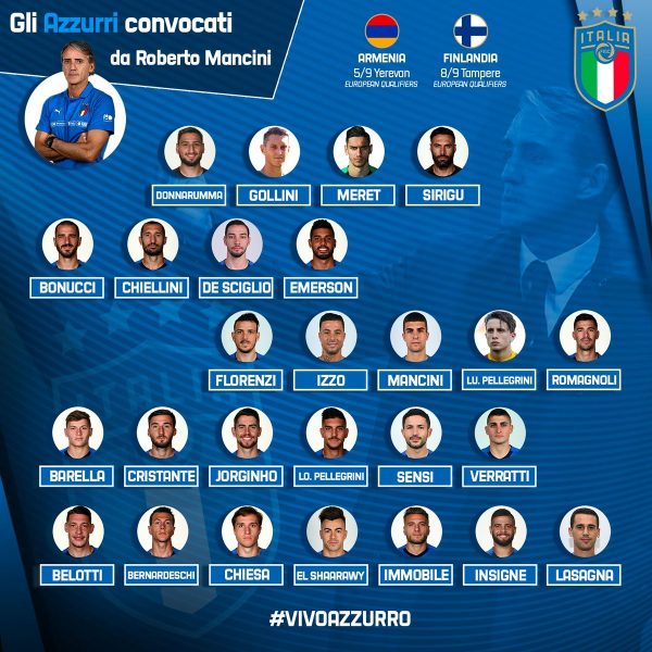 UFFICIALE – Ci sono le convocazioni del CT Mancini per le sfide con Armenia e Finlandia: presenti Meret e Insigne del Napoli!