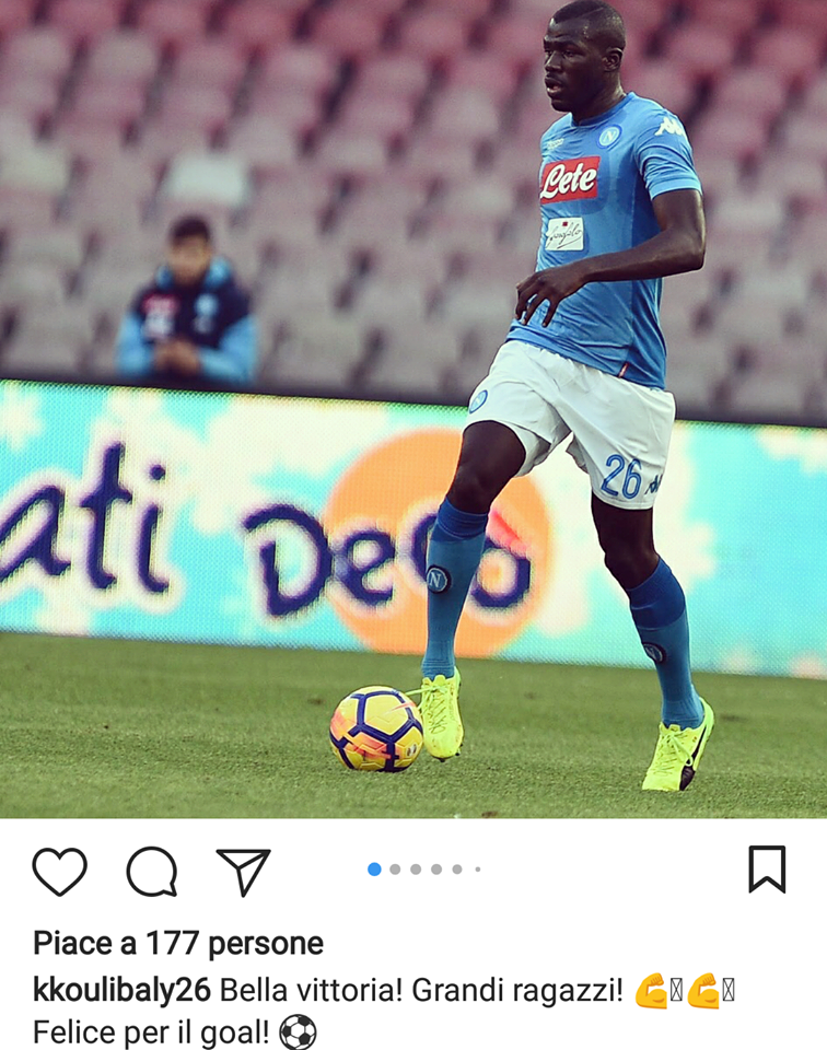 FOTO – Koulibaly su Instagram: “Bella vittoria, felice per il goal!”