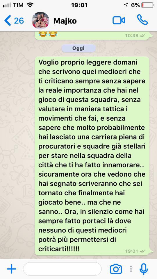 FOTO – Santacroce, messaggio whatsapp ad Hamsik: “Voglio proprio leggere cosa scriveranno i mediocri…”