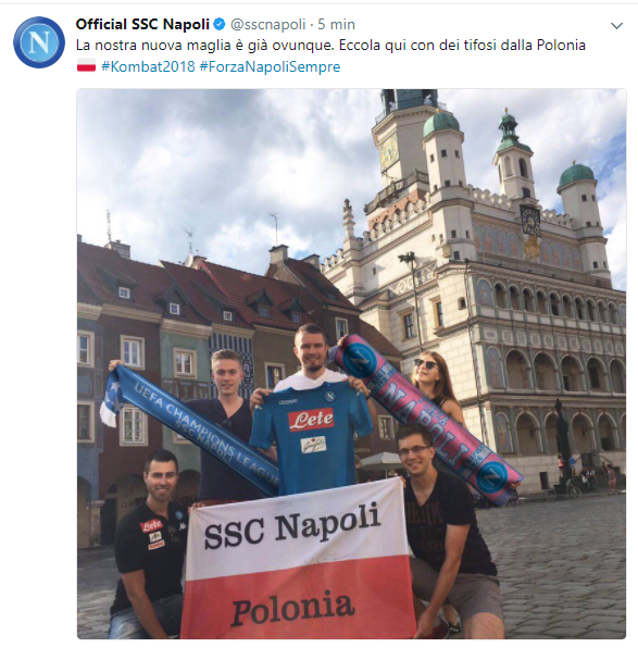 FOTO – Tifosi polacchi sfoggiano la maglia azzurra, il Napoli: “La nostra nuova maglia è ovunque!”