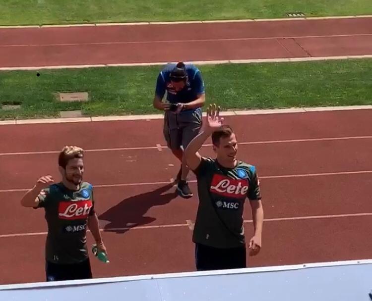 FOTO – Mertens e Milik in campo a Dimaro, ovazione dalla folla: “Olè olè Ciro!”
