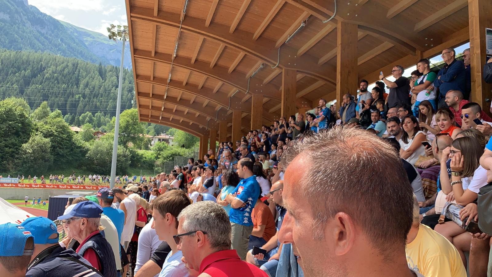 FOTO – Entusiasmo alle stelle a Dimaro: la tribuna dello stadio tutta esaurita per l’allenamento!