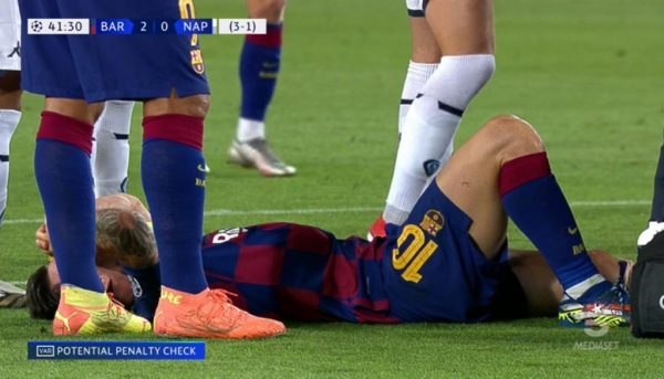 Koulibaly “calcia” la caviglia di Messi: calcio di rigore per il Barcellona e botta tremenda per l’argentino
