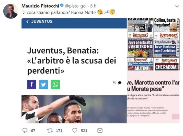 FOTO – Pistocchi ancora contro la Juve: “Hanno il monopolio dell’informazione e chiudono la bocca ai giornalisti scomodi!”