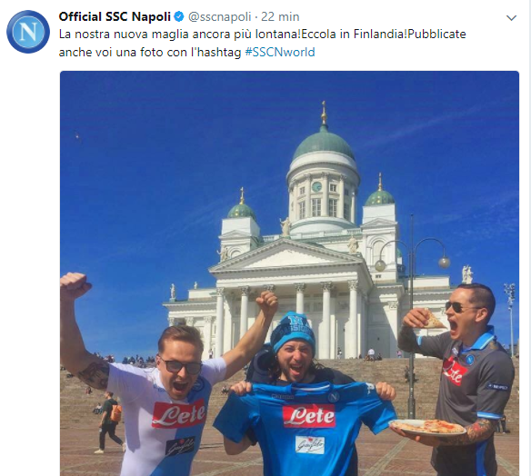 FOTO – Alcuni tifosi in Finlandia con la divisa azzurra, il Napoli: “Ecco la nostra maglia ad Helsinki”