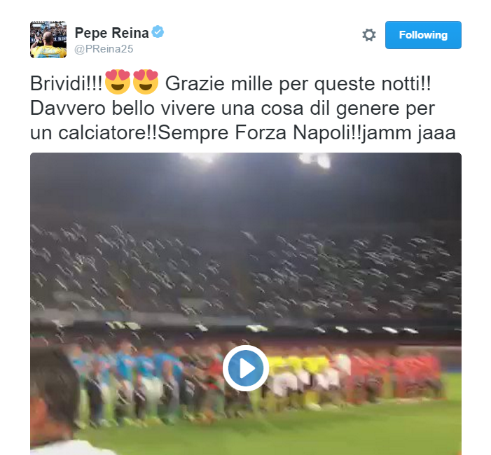 VIDEO – Reina, messaggio da brividi per i tifosi azzurri: “Grazie mille per queste notti!”