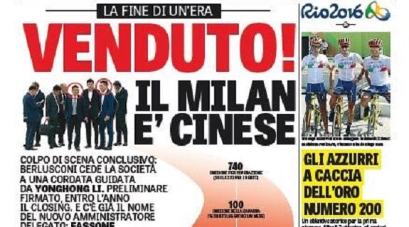 PHOTOGALLERY – Le prime pagine dei quotidiani sportivi: “VENDUTO! Il Milan è cinese”